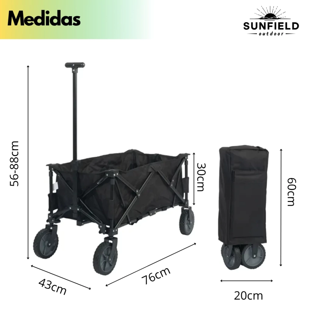 Este carrito plegable es la solución ideal para el transporte eficiente y seguro de tus pertenencias. Su diseño robusto y funcionalidad de plegado rápido lo hacen perfecto para la playa, camping, compras, jardinería, eventos y más.