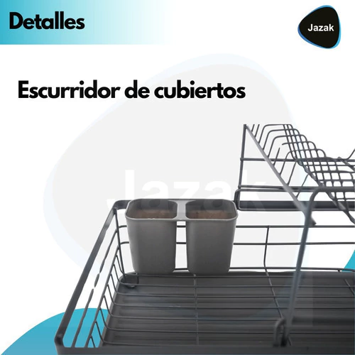 Escurridor secador de platos de acero de dos pisos con escurridor de cubiertos de pvc seca platos para 22 platos, cubiertos y accesorios. - Capacidad de HASTA 22 platos, apoya vasos, cubiertos y accesorios - Material: Acero pintado a fuego con pintura epoxy para larga vida util - Incluye bandeja escurridora de plastico PVC y escurridor de cubiertos de PVC - La bandeja incluye el desagote - Ideal para apoyar en la mesada - Super resistente - Medidas del producto: 41,5cm de largo x 30cm de ancho x 14cm de alto al primer piso y 28cm de alto con el segundo piso - Medida de la bandeja secaplatos: 42cm de largo x 31,5cm de ancho x 1,9cm de alto - Medida del escurridor de cubiertos: 15,5cm de largo x 7cm de ancho x 10cm de profundidad - Espacio entre niveles: 14cm - Grosor del acero principal: 4,4mm - Grosor del acero del cuerpo: 3,3mm - Producto de alta calidad
